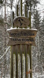 Modrzewiowa Trasa Konna 7,4 km zaczyna się przy Estancji Mezowo, przebiega przez Kaszubski Park Krajobrazowy, dotyka wsi Kiełpino – tworzy pętlę, którą można wrócić do naszej stajni.